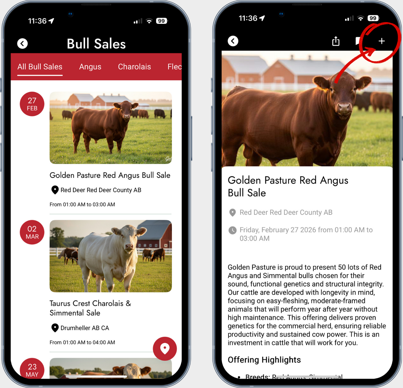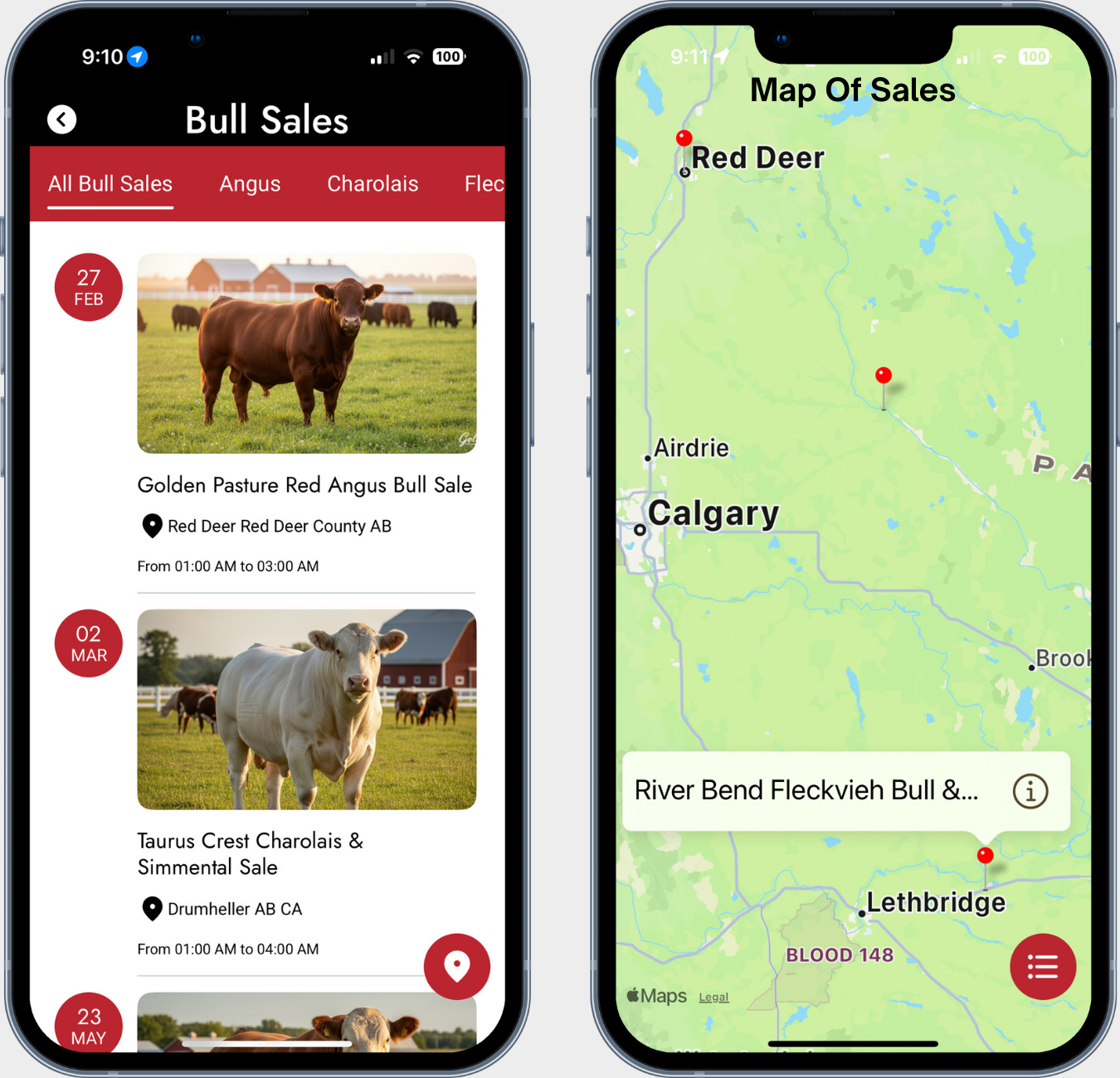 Provide buyers with essential information and easy access to upcoming livestock auctions and sales events through our mobile app's comprehensive calendar.