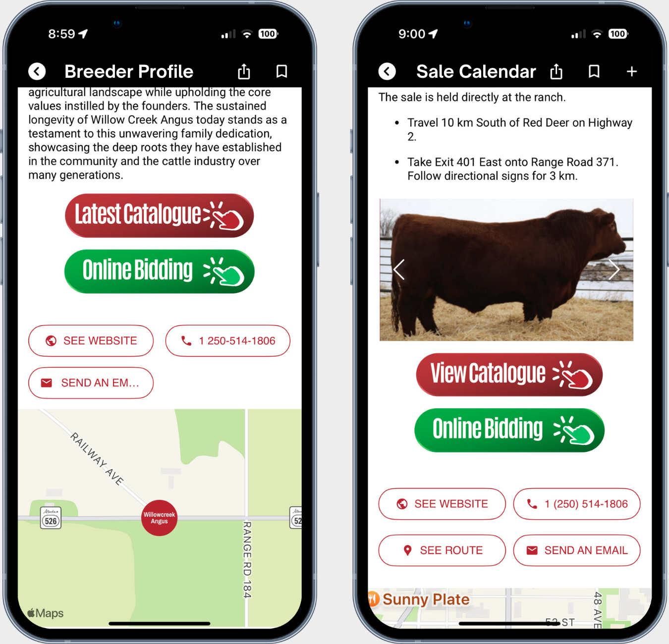 Expand your event's reach to a worldwide audience with the Livestock Sales App. Buyers, both established and new, will value the convenience of having comprehensive sale information readily available on their smartphones throughout the day.